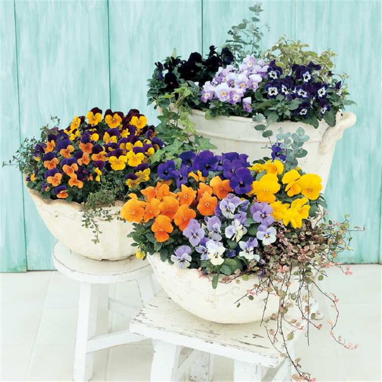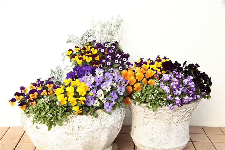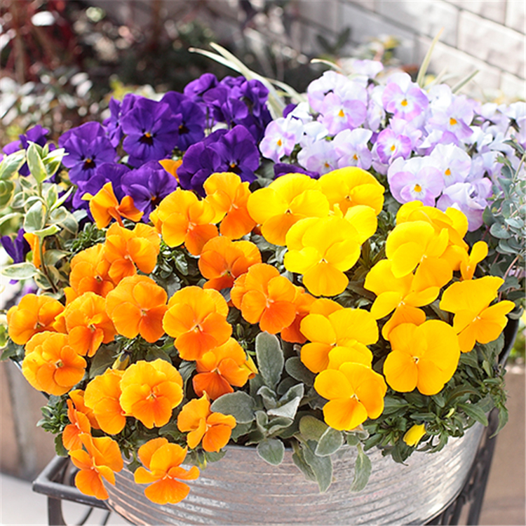 角堇(Viola cornuta),堇菜科堇菜属多年生草本,茎较短而直立,花径2.5~4cm。花期因栽培时间而异。角堇与三色堇花形相同,但花径较小,花朵繁密。近年来角堇因其花卉量丰富,颜色鲜艳亮丽,耐热性好,越来越多的受到市场的青睐。