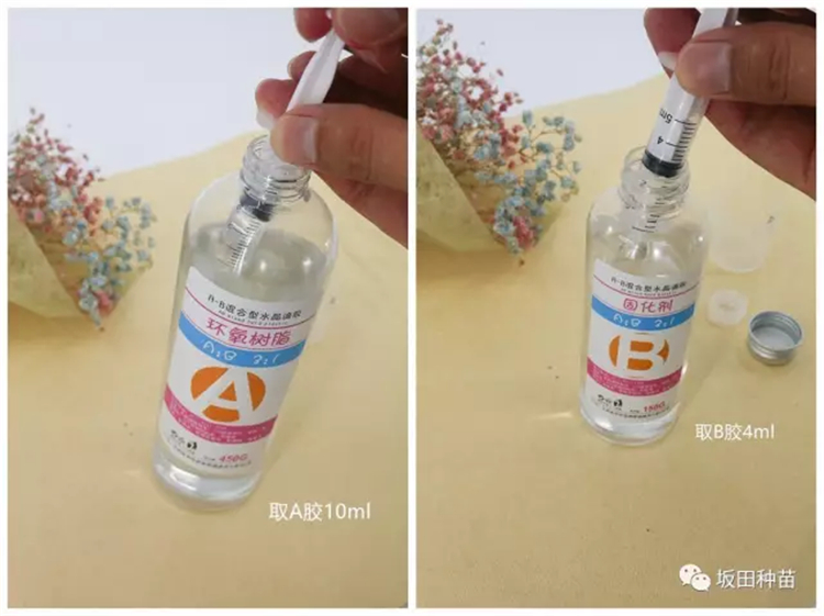 少量添加滴胶,直至滴胶能够完全覆盖住花材。